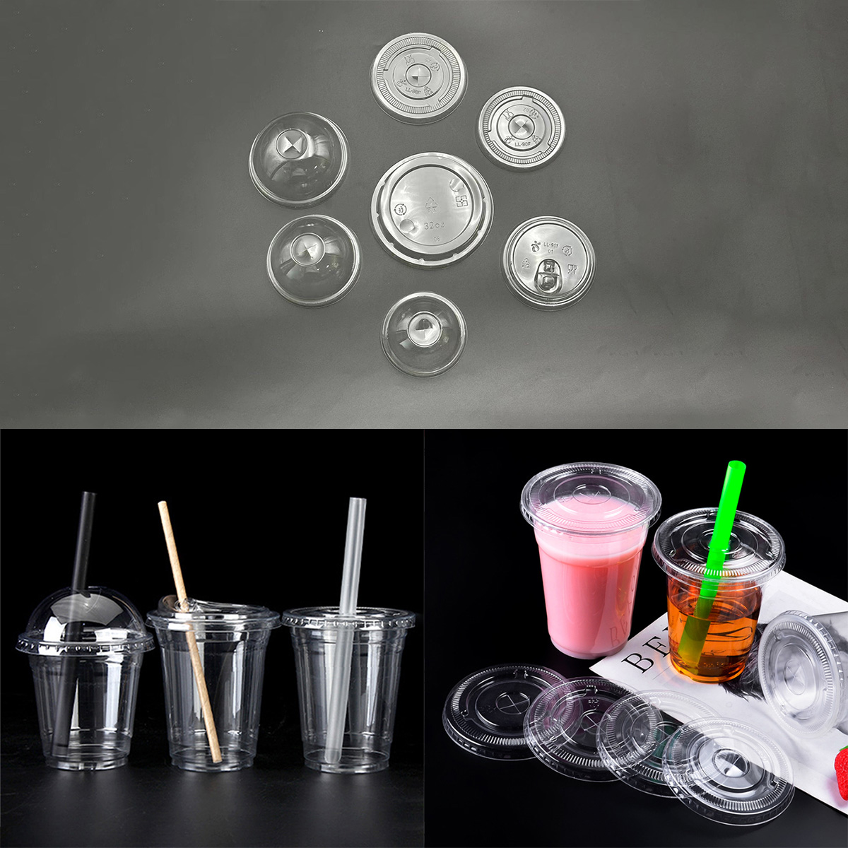 تناسب معظم أكواب القطر القياسية المتوفرة في السوق، ونحن نقدم لك خيارات من بينها 90 ملم، 98 ملم، 107 ملم.تصميم متعدد يلبي تفضيلاتك المختلفة للشرب: يمكنك الاختيار مسطحة وقبة بفتحات من القش، أو للشرب المباشر.يمكنك اختيار إما بلاستيك PET الرخيص أو PLA الصديق للبيئة.